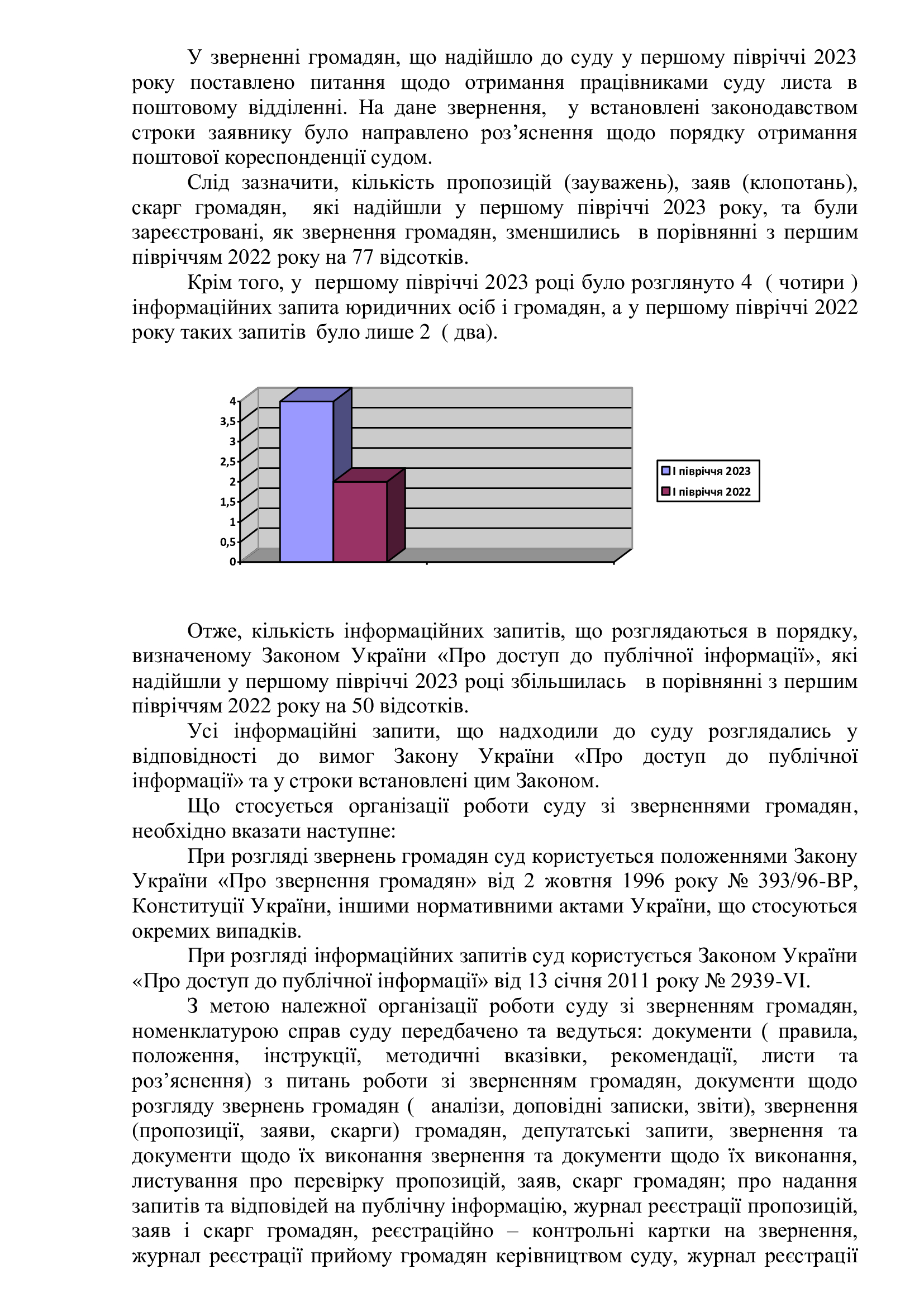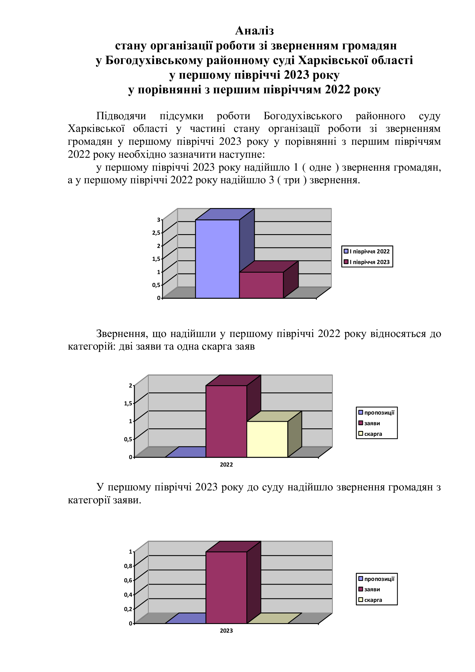 Аналіз стану організації роботи зі зверненням громадян у Богодухівському районному суді Харківської області у першому півріччі 2023 року у порівнянні з першим півріччям 2022 року