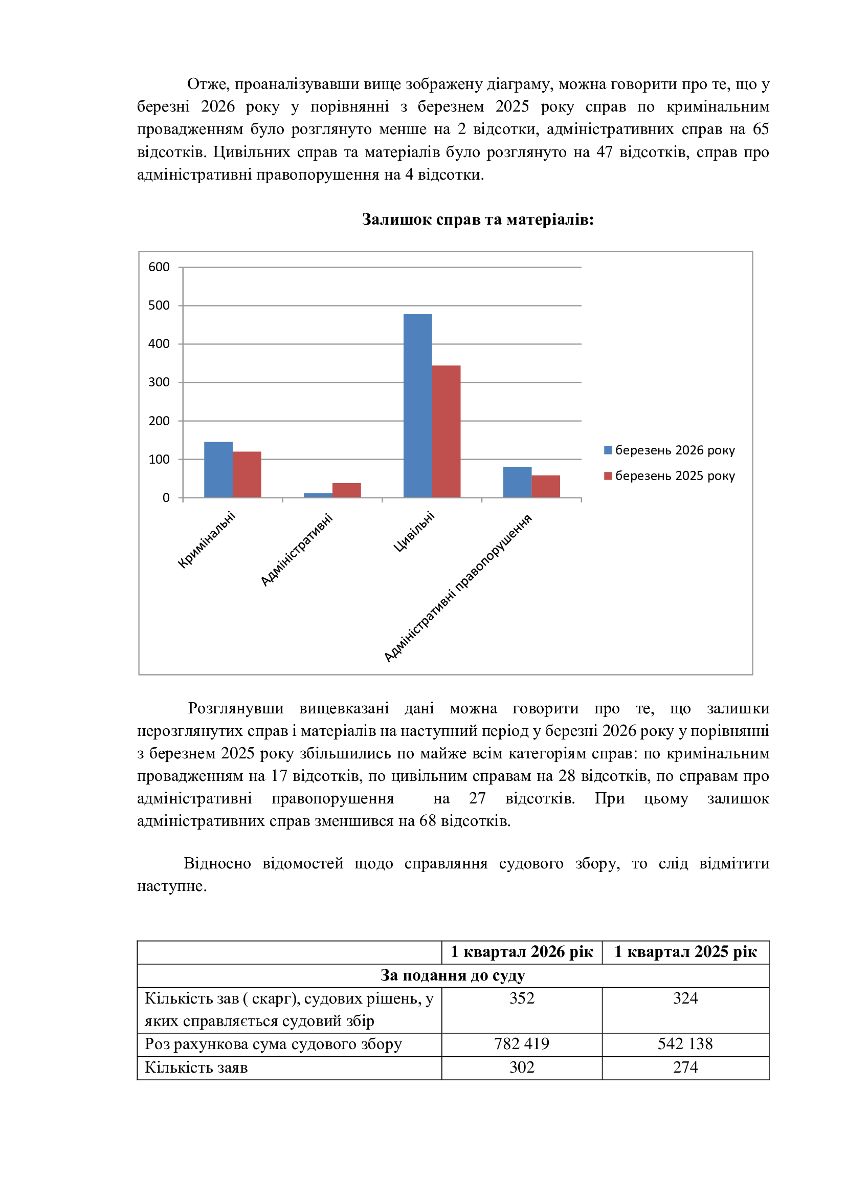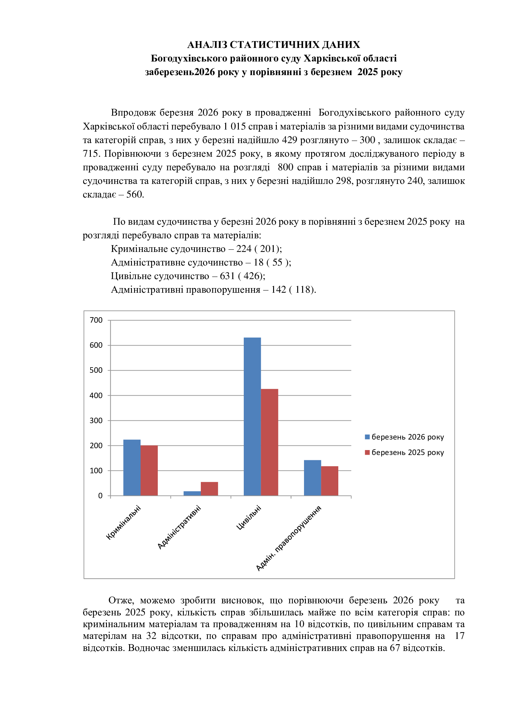 АНАЛІЗ СТАТИСТИЧНИХ ДАНИХ Богодухівського районного суду Харківської області заберезень2026 року у порівнянні з березнем 2025 року